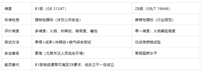 B1級阻燃電纜 ≠ ZB阻燃電纜。